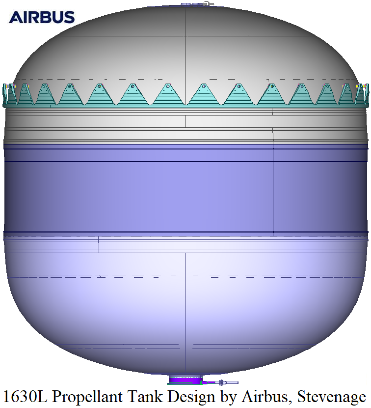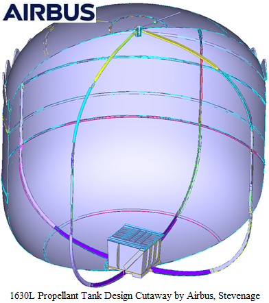 A family of surface tension bi-propellant tanks ranging from 1131L to 1630L was to be produced for a new set of generic Eurostar platforms. For best fit within the platform, the tank domes were to be approximately oblate spheroids, and the tanks were to be skirt-mounted from the upper half of the tank.