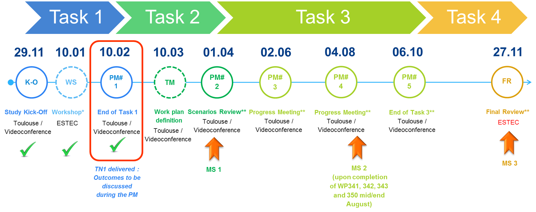 The study encloses 4 main tasks whose outcomes are discussed in phased progress meeting: