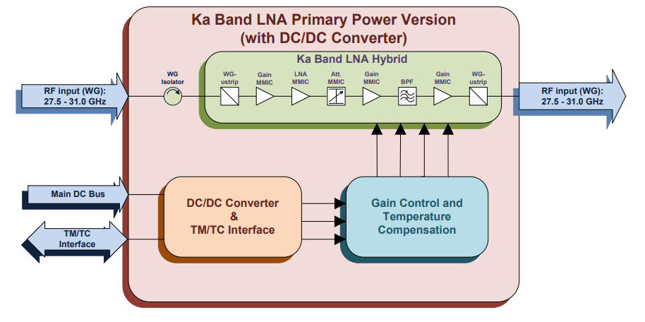The Ka Band LNA Primary Power Version consists of the following modules and sub elements: