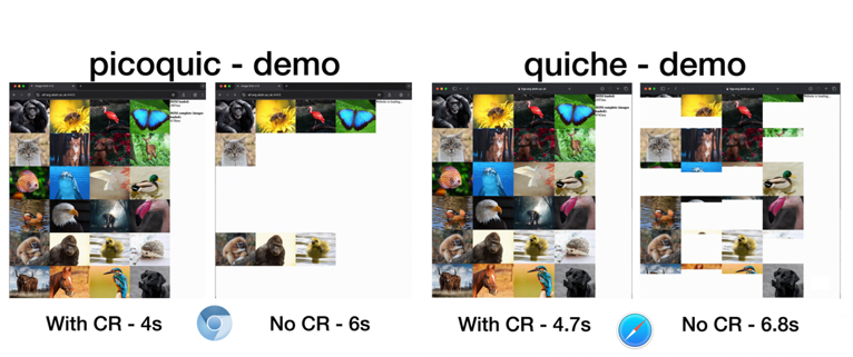 To demonstrate end-user relevance, additional experiments were performed with current web browsers. In these tests, Careful Resume substantially reduced webpage loading times and achieved ramp-up rates comparable to those of PEP-assisted TCP connections.