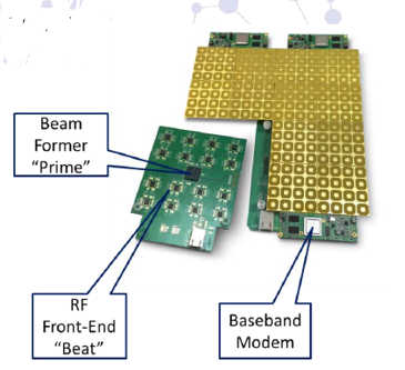 For the IOT demonstrator, 2 Prime chips with 16 Beat RFIC chips (Ku band) and 64 antenna elements are planned to be integrated along with one satellite modem ASIC.