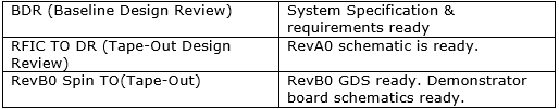 Phase-1 is focused on achieving Tape Out of the RFIC Chip. There are 3 milestones in this phase-1.
