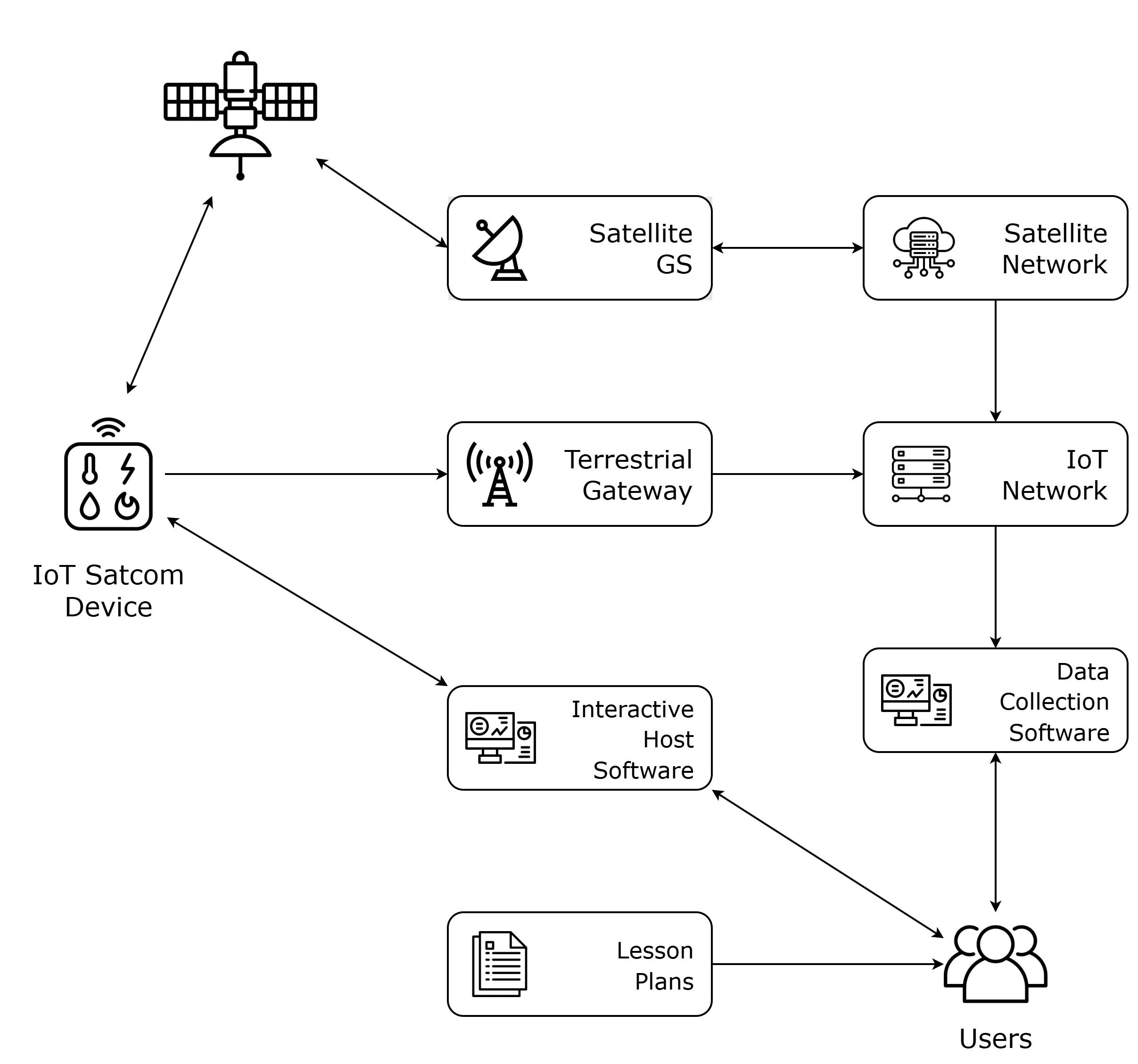The developed solution consists of an IoT Satcom Device, Data Collection and Visualisation Software, an Interactive Host Software, and educational material.