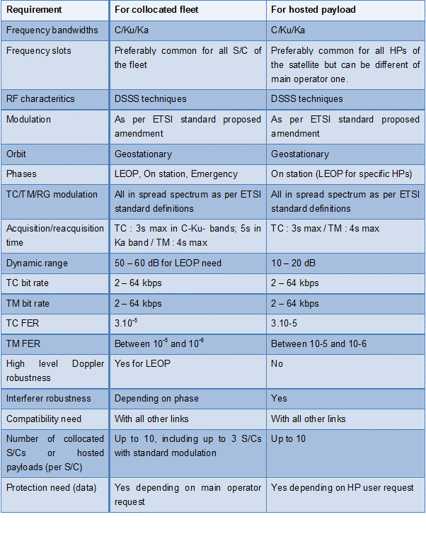 – Hosted payloads management. Compatibility and segregation between each payload and also with satellite TCR imply new requirements and complex frequency plans and interference analyses. Also, hosted payload operators can be interested in having independent access to their function. Eventually, higher data rates will be needed for this management.