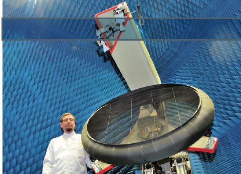 The KuDGR is based on single rods bonded together to a grid. This is the RF surface. This grid is bonded to a 3D shaped L ring. This assembly is bonded in a symmetrical omega shaped elliptic ring. For top deck applications the ring is mounted by three isostatic mounts to the panel.