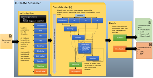 - C-DReAM capacity/link budget level system simulator for modelling the (various type of) satcom link budget, availability, error, and throughput performance.