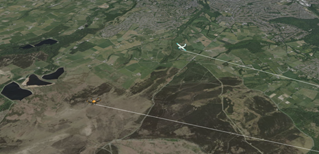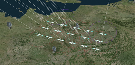 - Simulation capability 2: Dynamicity of individual UAV flights over certain predefined flight paths. This includes the flight paths, dynamic attitude, ground morphology and related channel models and blockages. Note, that here both the UAVs as well as satellites may move, and in fact, also one-to-many simultaneous UAVs need to be able to be simulated.