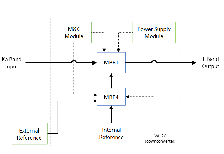 WIF2C is a New Generation Wideband Integrated Flexible Frequency Converter for low Earth orbit (LEO) / medium Earth orbit (MEO) / geostationary orbit (GEO) satellite covering the broadband satellite communication market demands.